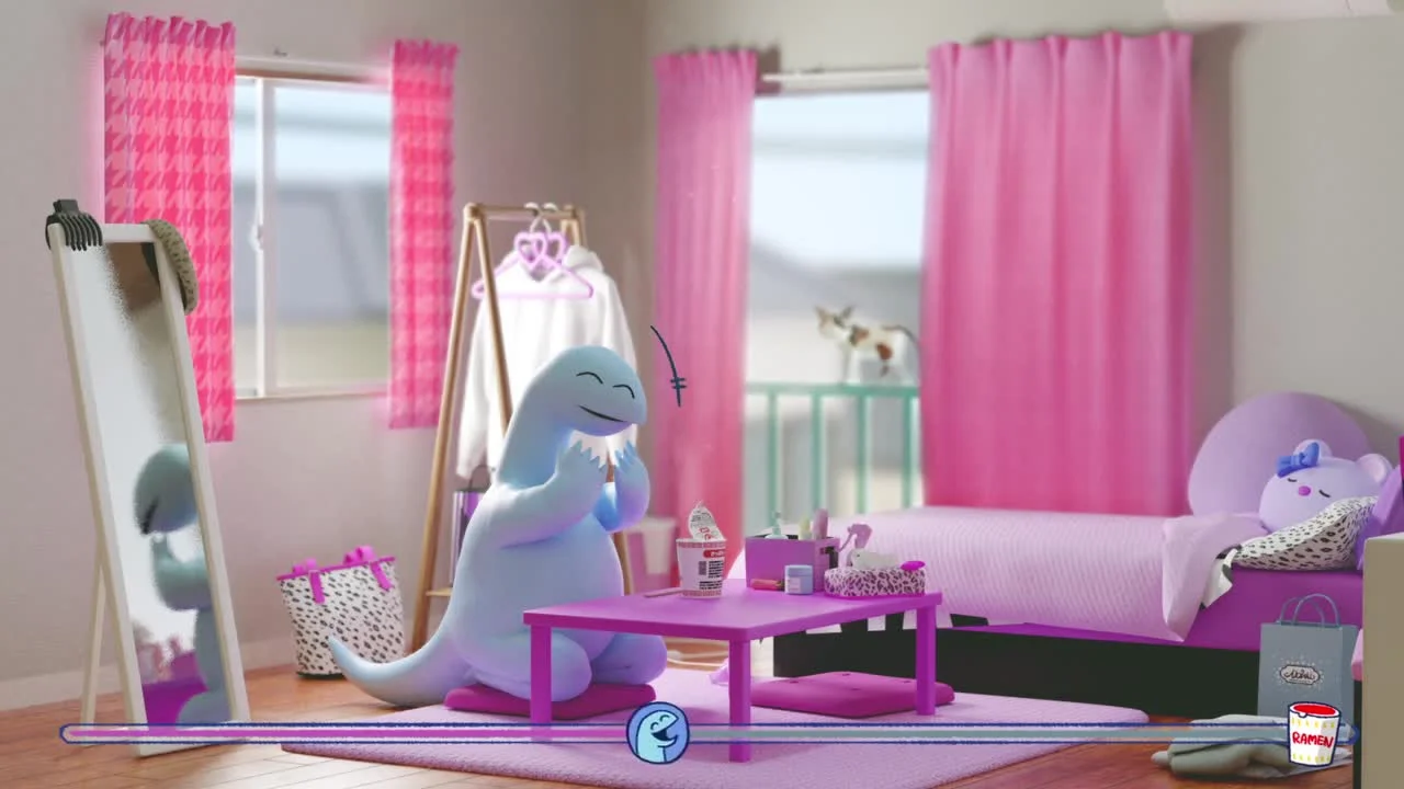 Напротив, динозавр оказался обладателем доброты и теплоты. Они нашли много общих увлечений, включая любовь к сладостям и развлечениям. Вместе они испытывали настоящее счастье, играя, танцуя и наслаждаясь обществом друг друга. Гяру почувствовала, как её жизнь наполнилась смыслом, и страхи с одиночеством отступили, ведь теперь у неё был верный защитник, готовый поддержать в трудную минуту. Однако был один секрет — никто не должен был узнать о существовании её необычного друга, поэтому Гяру тщательно скрывала его от всех. Со временем девушка стала волноваться о продолжительности их тайного общения, задаваясь вопросом, сколько ещё они смогут оставаться в секрете.