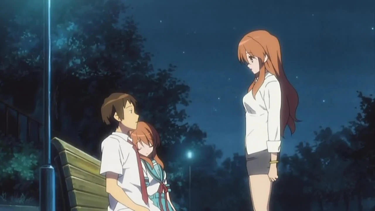Вскоре выясняется, что мир вокруг них кардинально изменился, и теперь они живут в альтернативной реальности, созданной по желанию самой Харухи. В этом новом мире Нагато — просто застенчивая смертная девушка, Асахина — обычная одноклассница, а Койдзуми и его организация «Агентство» бесследно исчезли. Кён, оставшийся единственным, кто помнит прошлую реальность, должен в одиночку разгадать тайну произошедшего, не потревожив Харухи, и решить, стоит ли возвращать всё назад, ведь в этом новом, более простом мире, у него, возможно, появился шанс на нормальные отношения с той, кого он знал как инопланетянина.